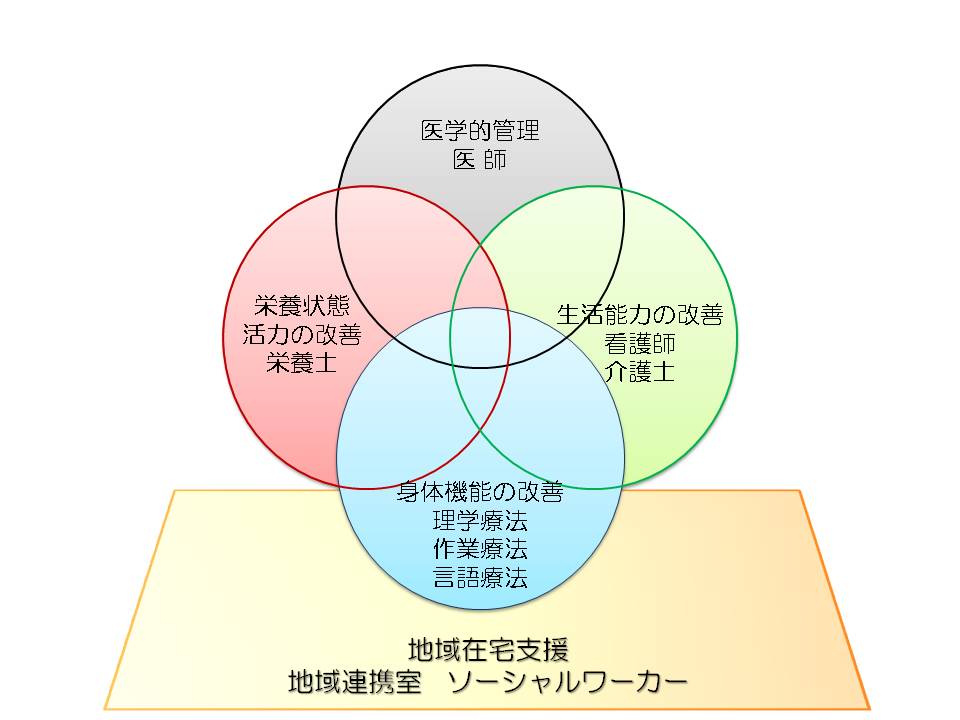急性期から回復期へと円滑に移行を進めるため、発症からの経過•治療方針•日常生活の状況などの情報共有をスタッフ間で図っています。また、回復期リハビリテーション病棟へ転床後には定期的なカンファレンスを行い、対象者の問題点•目標を病棟、リハビリのスタッフ間で共有することで対象者の在宅復帰へと繋げています。